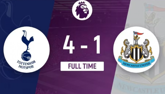第92分鐘,紐卡扳回一球,熱刺后場失誤,喬林頓接球后直接右腳推射破門,熱刺4-1紐卡斯爾!