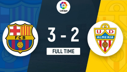 西甲第18輪,巴薩主場(chǎng)對(duì)陣阿爾梅里亞。上半場(chǎng),阿勞霍頭球攻門被撲,拉菲亞補(bǔ)射破門。隨后阿勞霍失誤,巴普蒂斯塔為阿爾梅里亞扳平比分;下半場(chǎng),拉菲尼亞角球助攻羅貝托頭球破門。佩尼亞被阿勞霍撞翻造成脫手,埃德加打進(jìn)空門。萊萬(wàn)助攻羅貝托再次超出,佩尼亞終場(chǎng)前貢獻(xiàn)關(guān)鍵撲救。最終,巴薩3-2戰(zhàn)勝墊底的阿爾梅里亞,終結(jié)聯(lián)賽2輪不勝&各項(xiàng)賽事3場(chǎng)不勝,先賽一場(chǎng)落后暫時(shí)榜首的赫羅納6分。